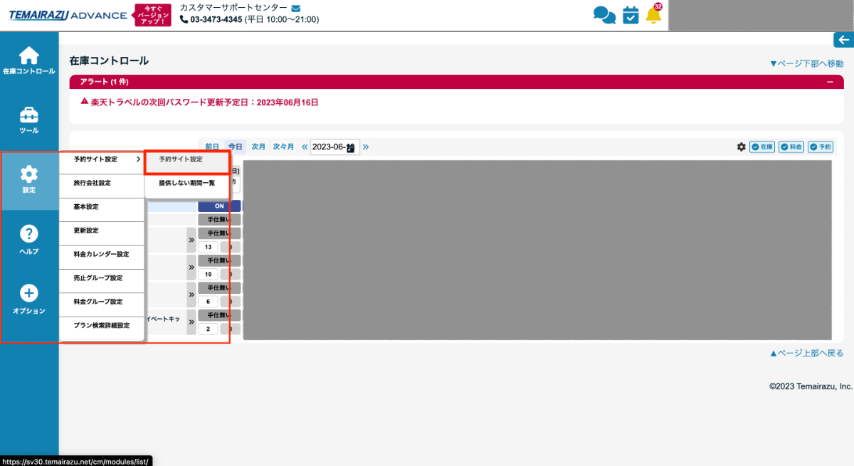 設定→予約サイト設定![1.管理画面[設定]→予約サイト設定]の画面