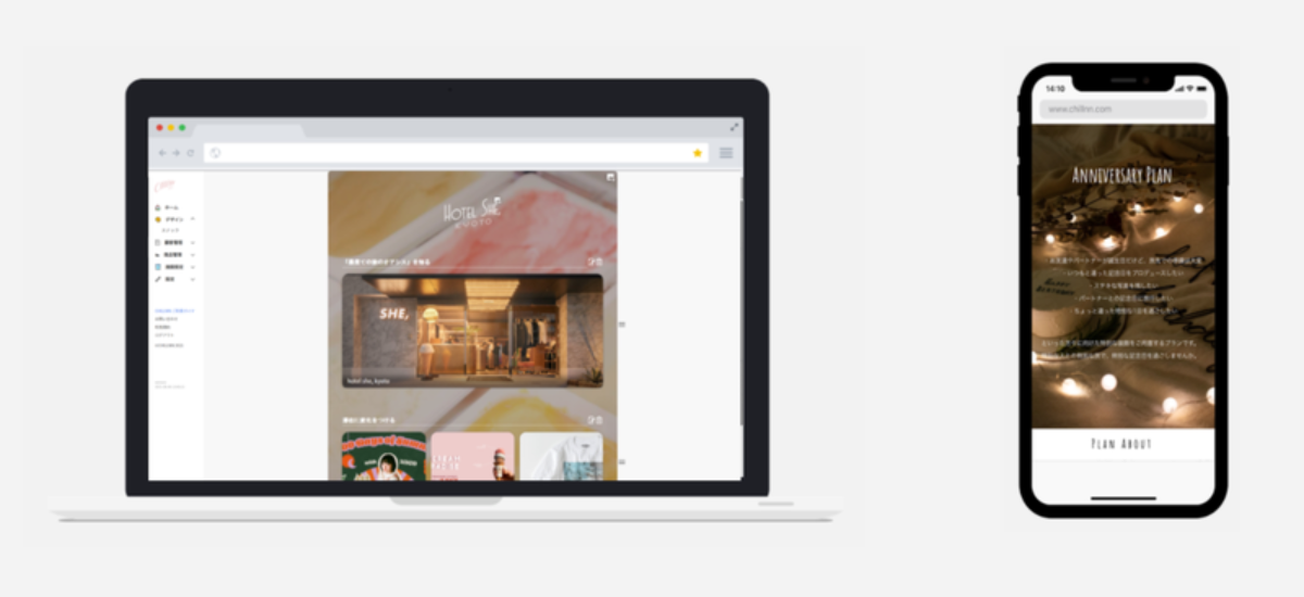 PLANのフェーズでは、Snackのノーコードデザイン機能を用いて、ホテルの持つコンテンツを魅力的に表現して、独自の予約ページを構築します。
