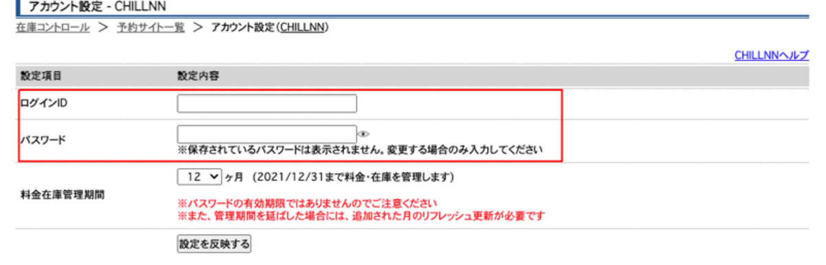2.CHILLNN画面で表示されているログインID及び設定した任意のパスワードを入力します。