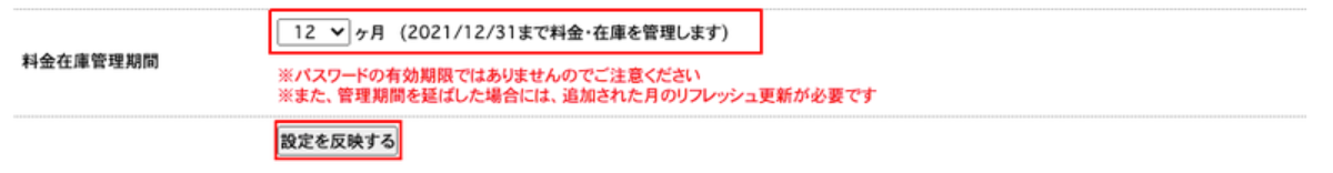3..料金在庫管理期間に任意の期間を入力し、「設定を反映する」をクリックしてください。