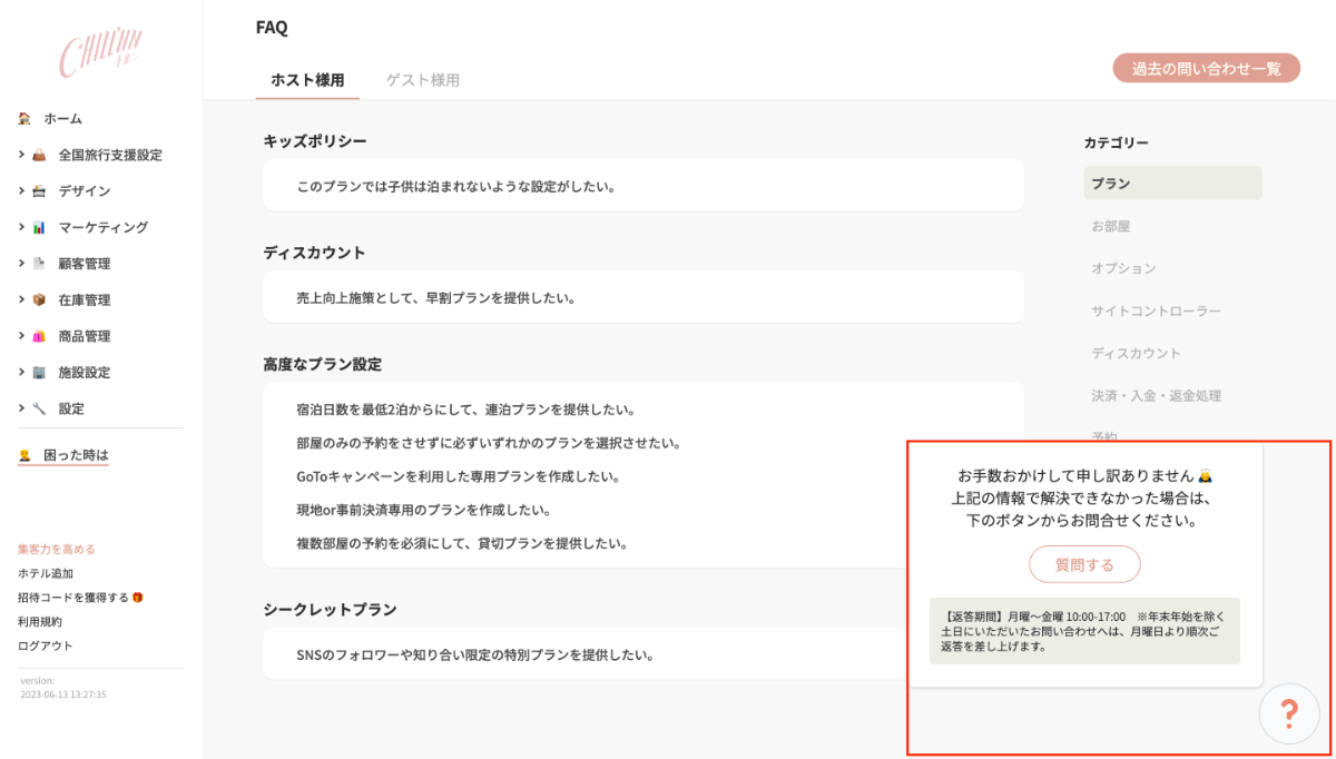 ご不明点等ございましたら、管理画面からお気軽にお問い合わせくださいませ!