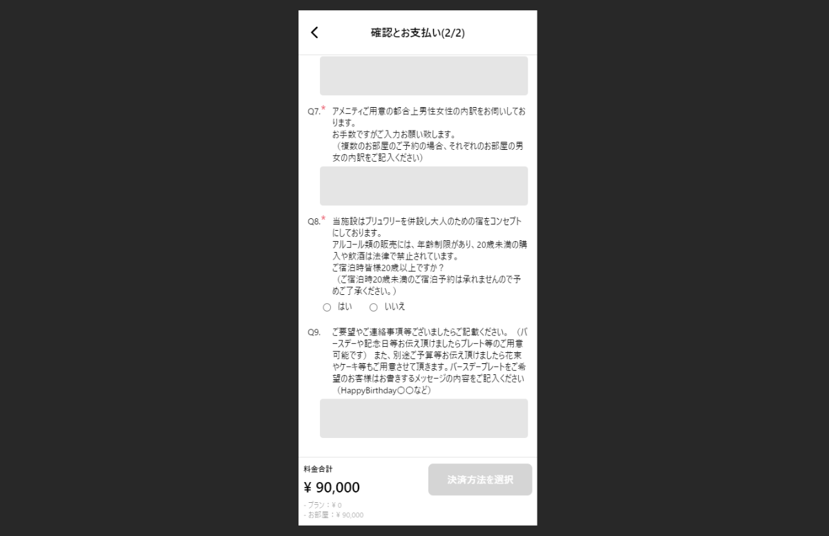 そこで、事前質問機能をうまく用いて、予約時点でゲスト様に確認したいことを質問し、お客様と施設側とのトラブルやミスマッチ等を未然に防いでいます。