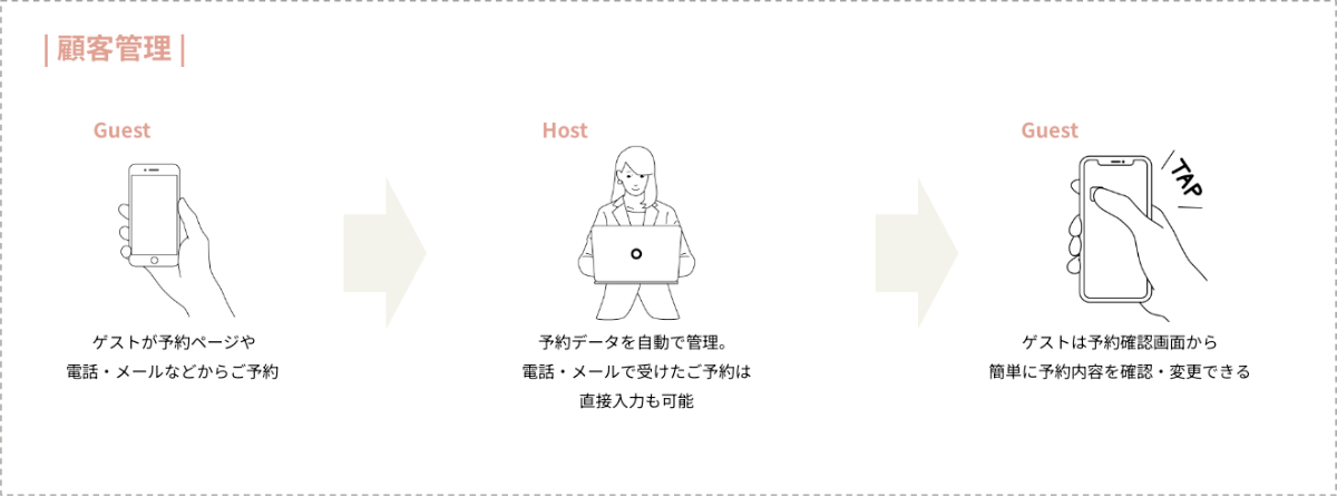 予約導線の中で、こちらが伝えたいことを自由にお客様に伝えることができ、HPのデザインとトンマナが合った予約ページも作成できるため、お客様とこちら側の齟齬が少なくなりました。