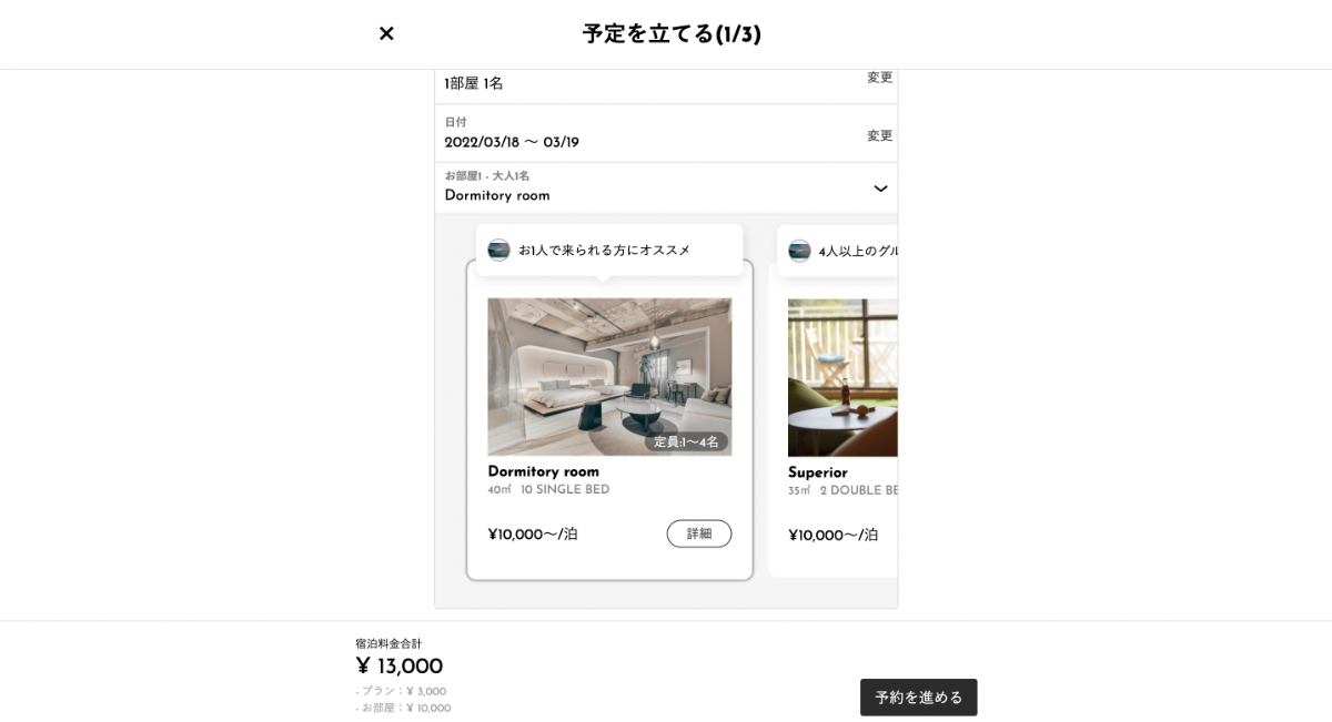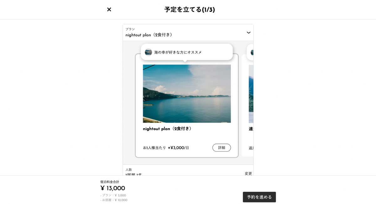 これまでは、「プラン、人数、日程、お部屋」を探すごとに画面遷移が発生していましたが、この度、一つのページで完結するように変更しました!