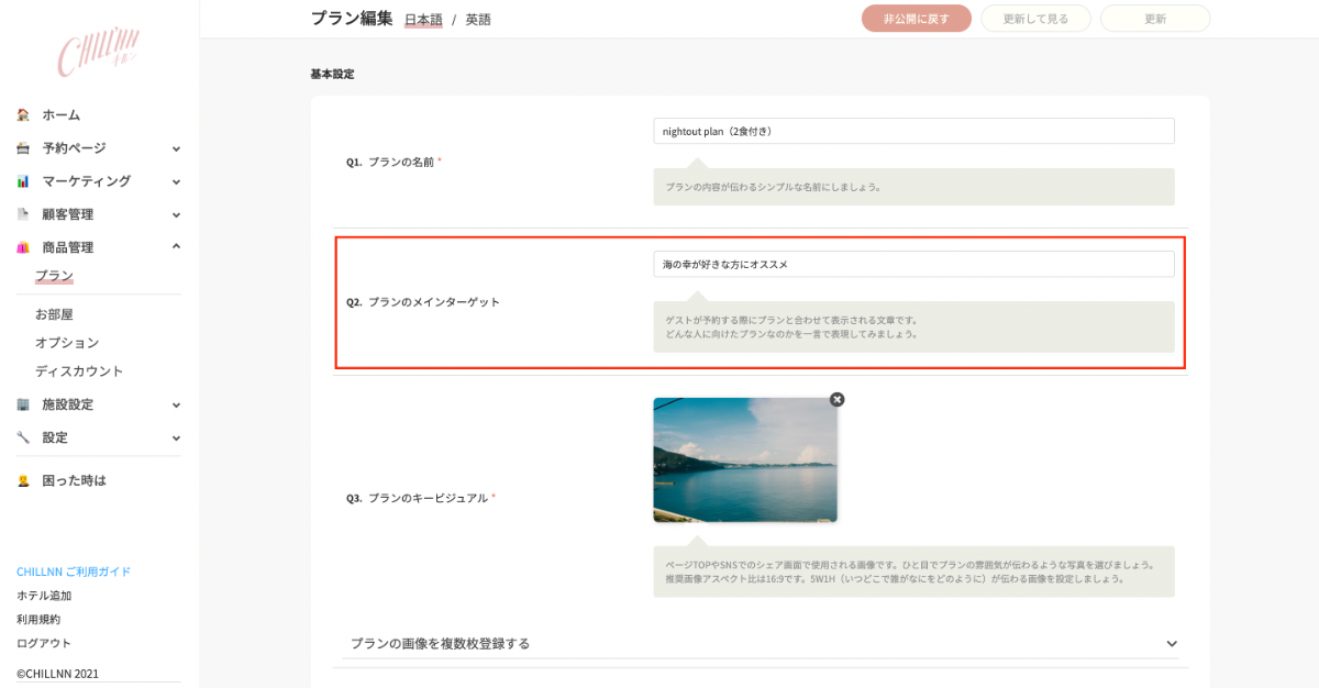 変更点② プランやお部屋にコメントをつけることが可能に