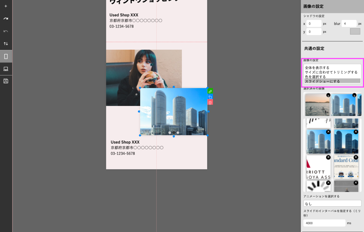 ② サイドメニューの「画像の設定」から「スライドショー」を選ぶ。