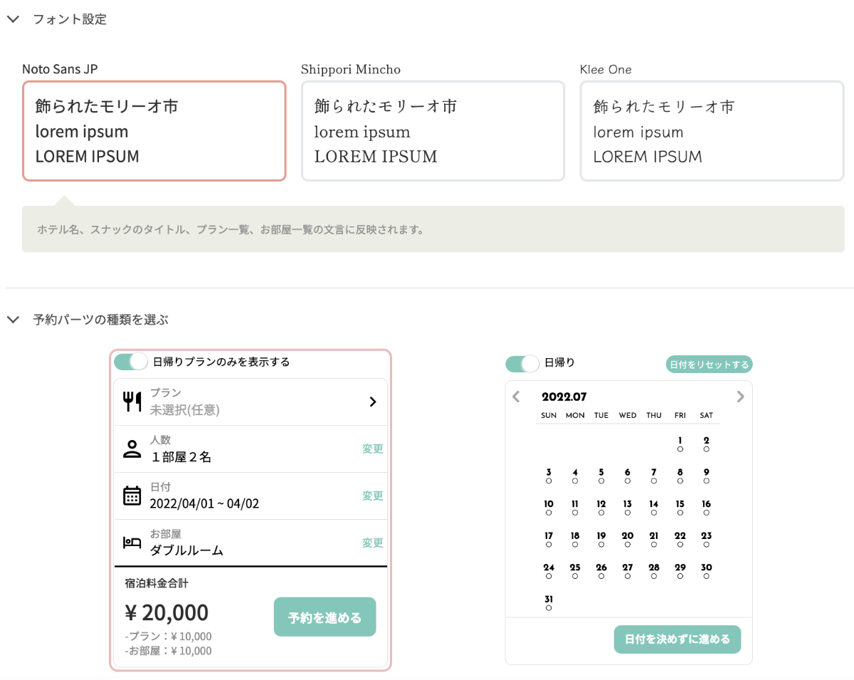 ・すでに設定済みの施設情報を、予約ページ上に表示するか選択する