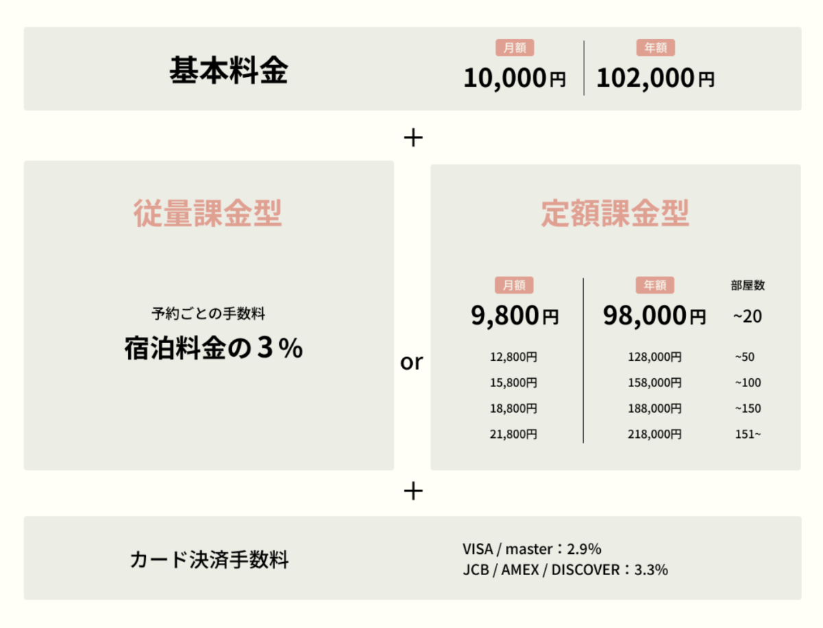 ※3つのプランからお選びいただけます。上記は1〜20室の施設の料金となります。