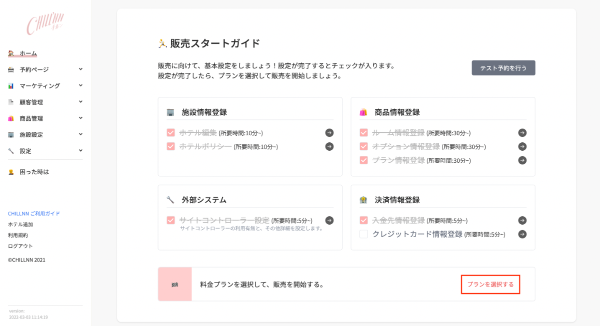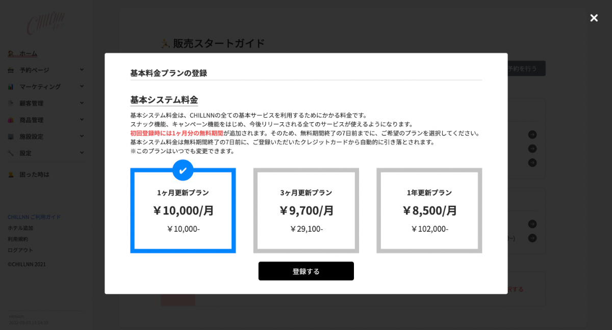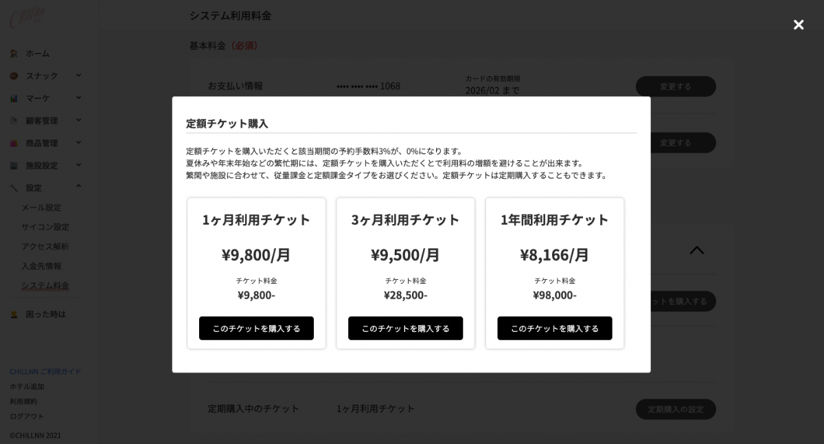 初期の状態は従量課金型の料金が適用されおりますので、予約1件あたり3%の設定になります。