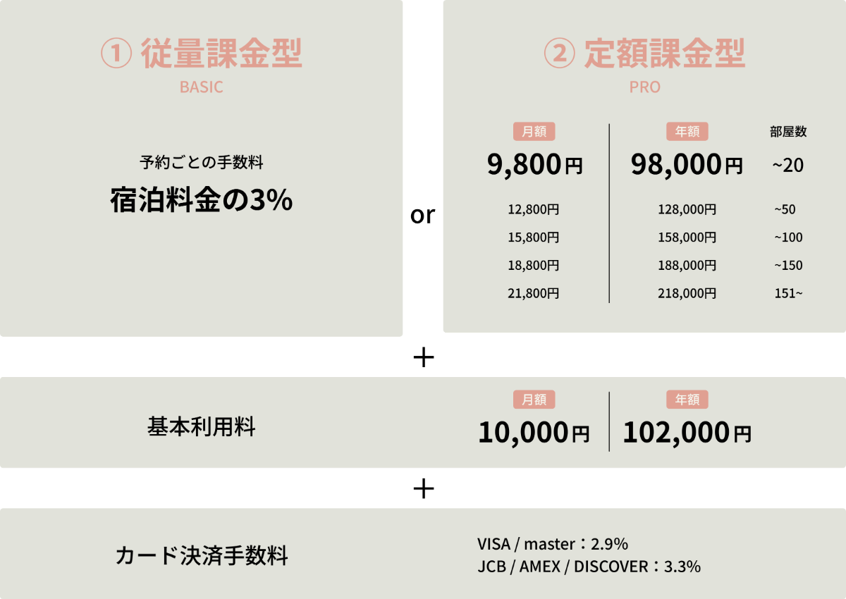 定額課金型:月額9,800円(※部屋数20室以下の場合)