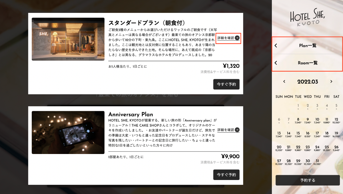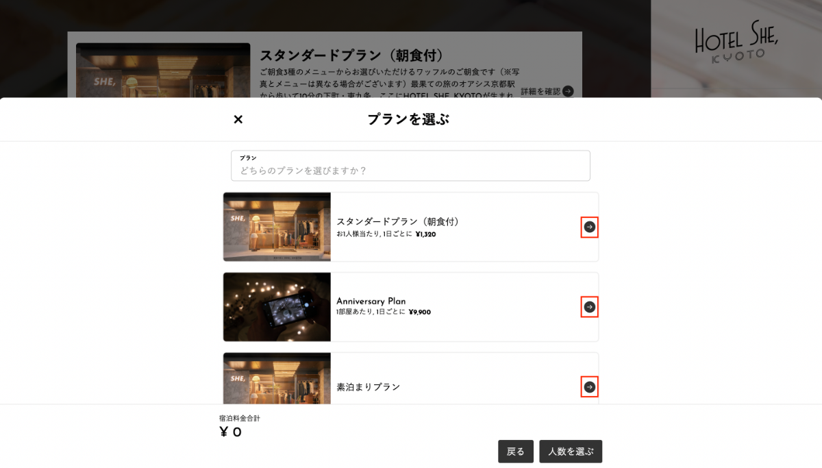 作成し、公開したプランやお部屋がここで選択可能になっております。