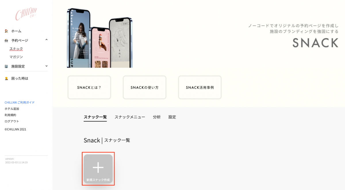 ※ ③で既に作成済みの方は当該のスナックをクリックしてください。