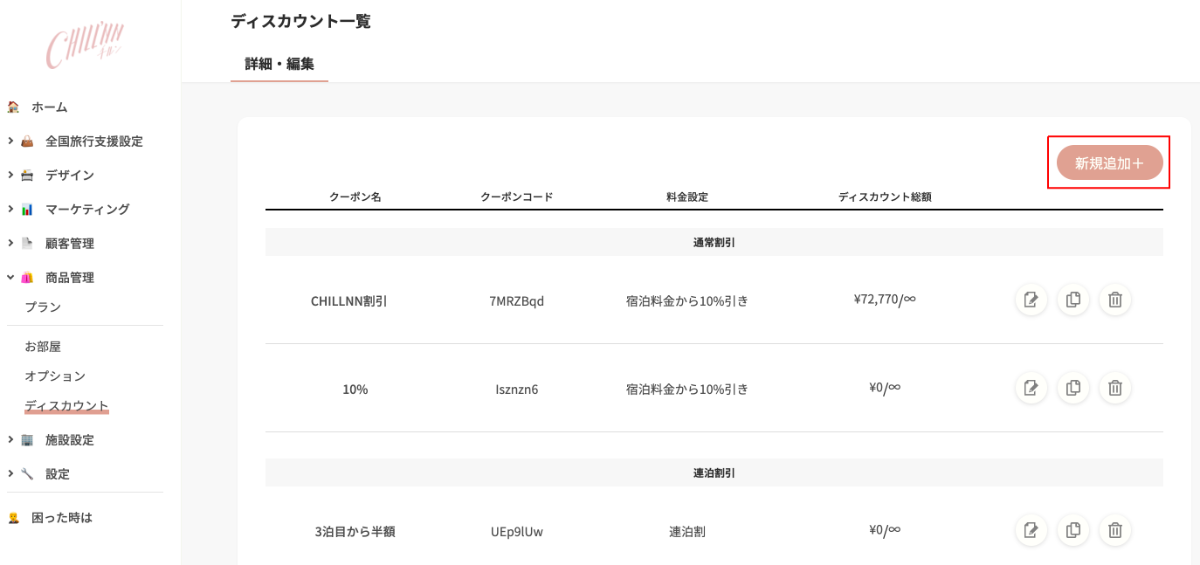 いかがでしたでしょうか。CHILLNNなら簡単にディスカウントを適用させたプランを作成いただけることがお分かりいただけたと思います。