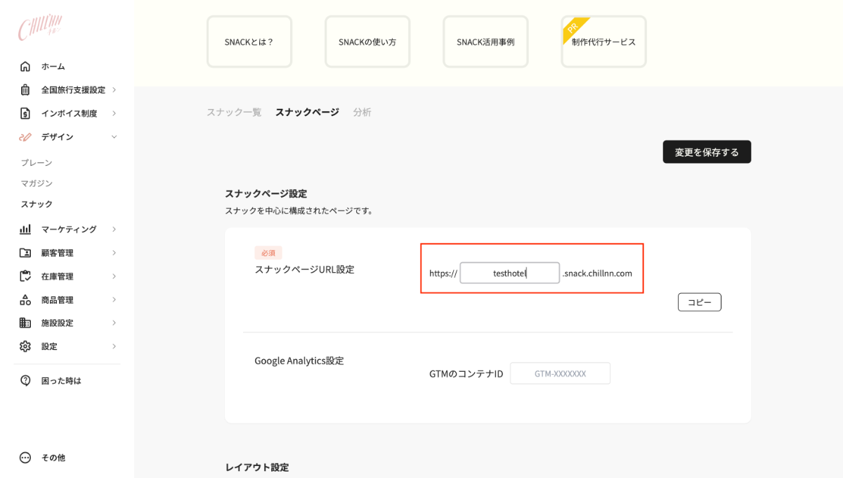 1.SnackページURL設定を行う