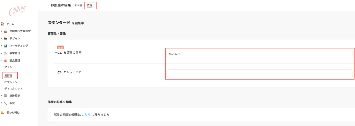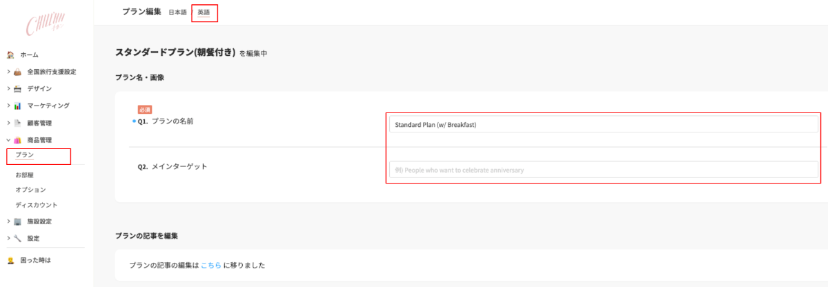 3. 記事(施設・プラン・お部屋)を英語版作成する