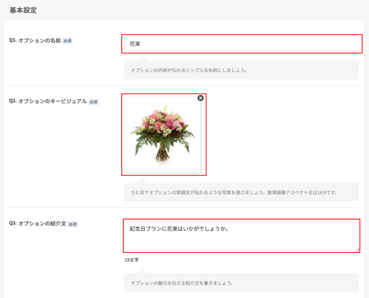 2.[オプションの名前]、[オプションのキービジュアル]、[オプションの紹介文]を設定します。