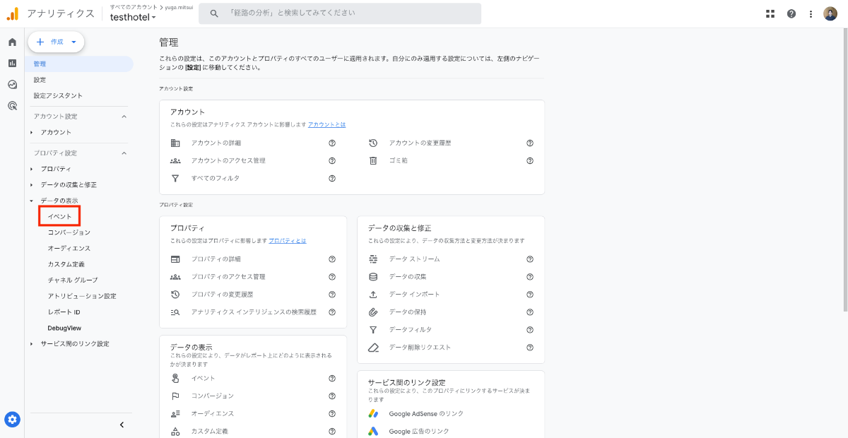 □ Googleアナリティクス管理画面より [管理] ➡︎ [プロパティ設定] ➡︎ [データの表示] ➡︎ [イベント] からイベントの設定画面を開く